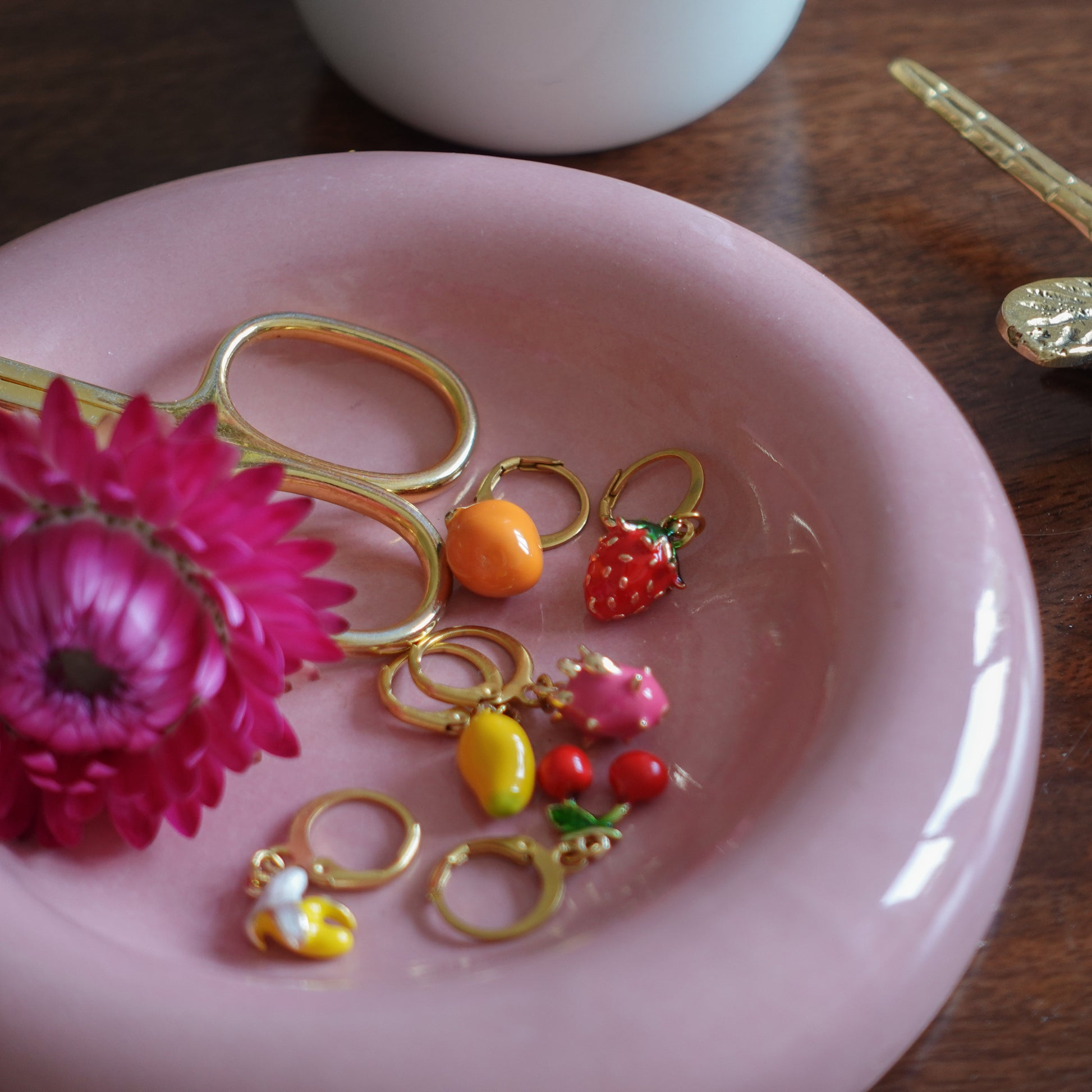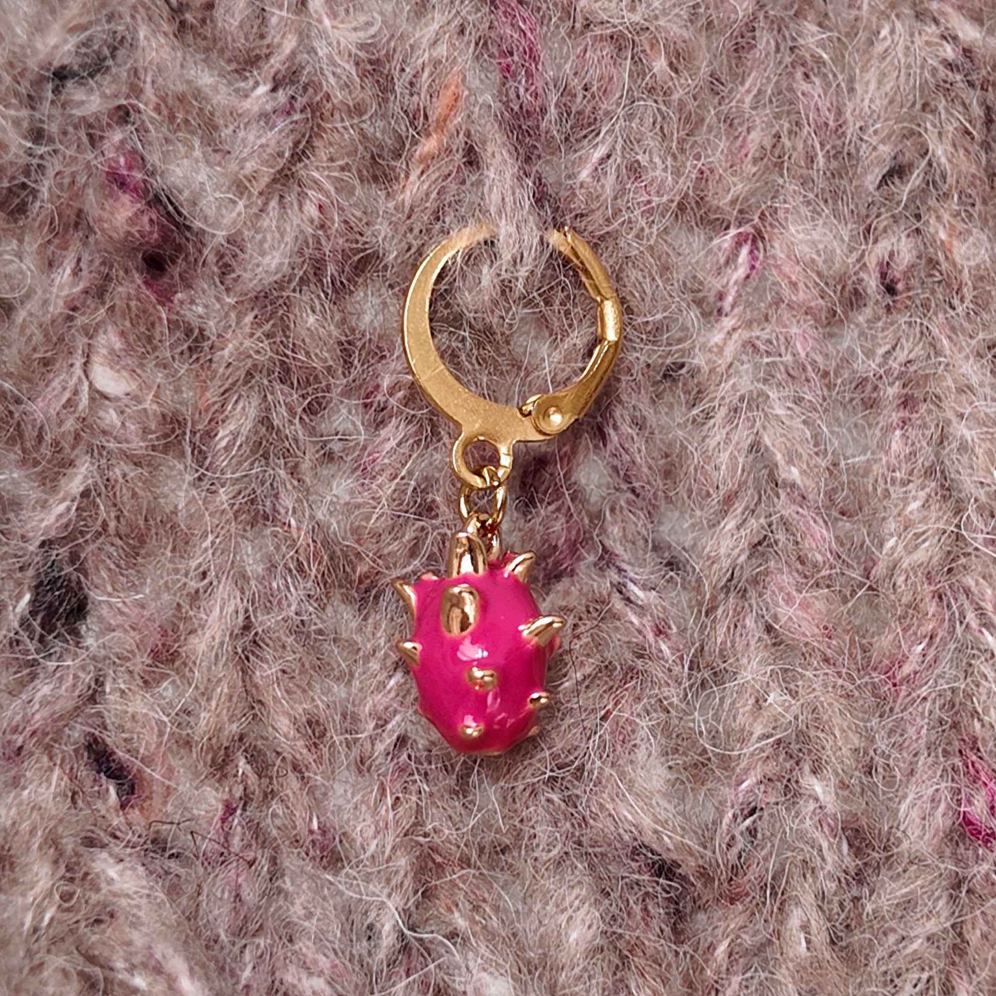 Maschenmarkierer Drachenfrucht mit Klappverschluss. 3cm lang inkl. Verschluss.