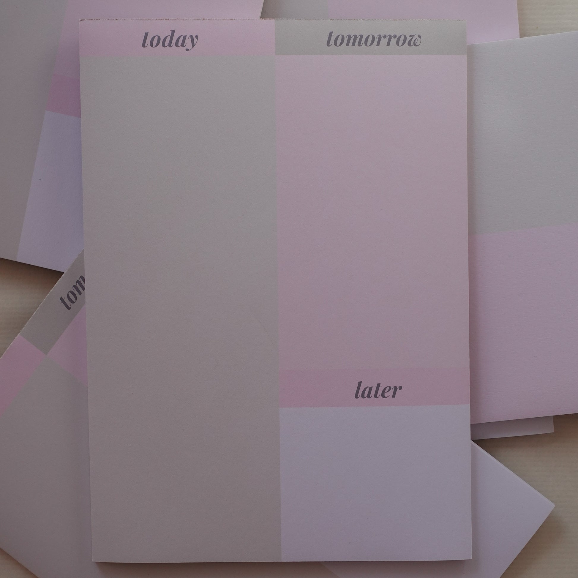 A5 Abreißblock 50 Blätter mit drei Kategorien: heute, morgen, später für eine übersichtlichere to-do Liste